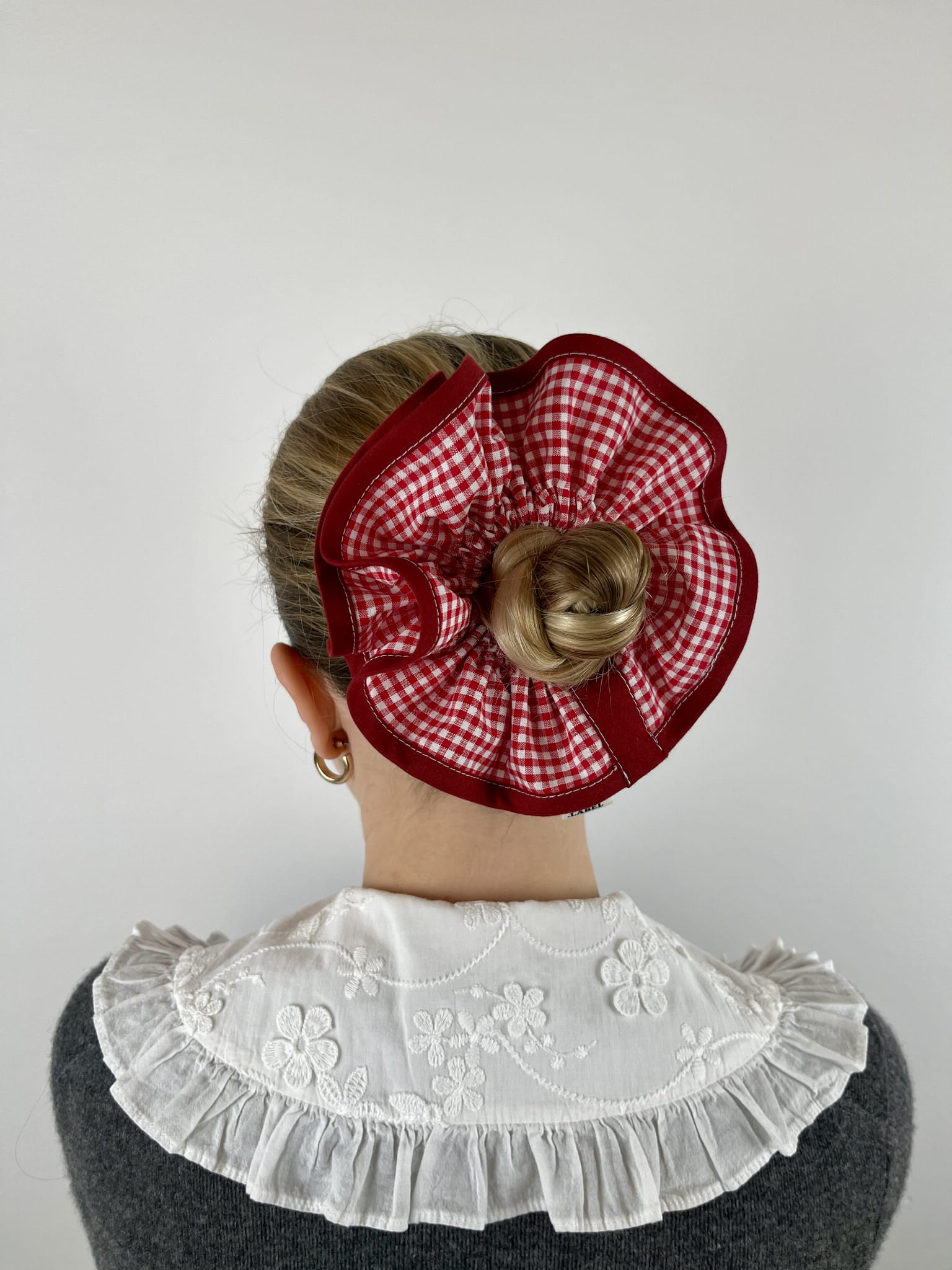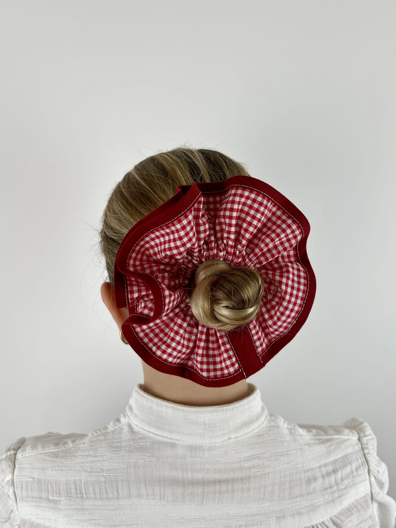 Elegancja, wygoda i doskonałe dopasowanie – to cechy, które wyróżniają naszą dwuwarstwową gumkę do koka. Wykonana z wysokiej jakości bawełny w kratkę, zachwyca nie tylko swoim wyglądem, ale także trwałością i komfortem noszenia. Dzięki dwóm warstwom materiału gumka prezentuje się jeszcze bardziej efektownie, a subtelne wykończenie bawełnianą lamówką dodaje jej wyjątkowego charakteru.