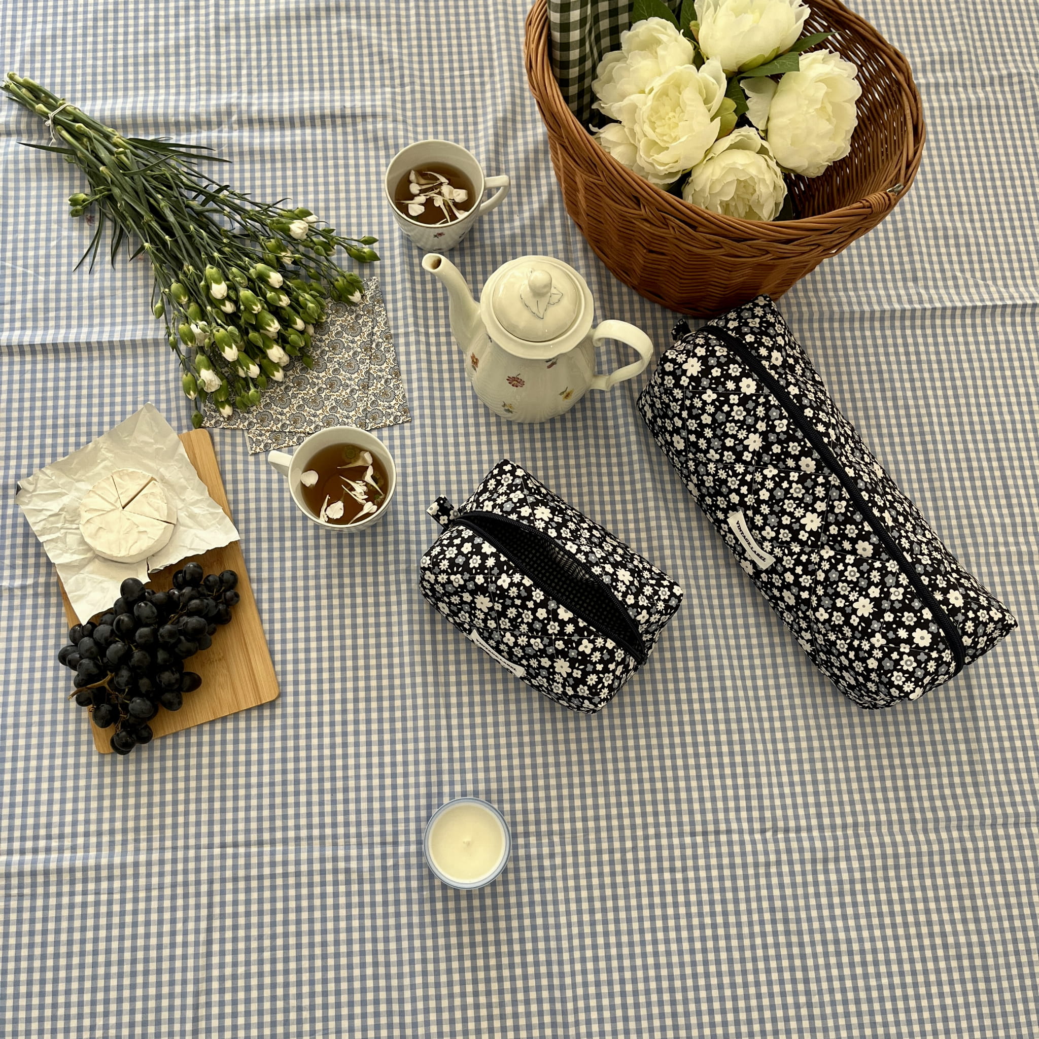 Lekka i pojemna kosmetyczka wykonana z naturalnej bawełny, idealna do przechowywania suszarki, lokówki czy prostownicy.