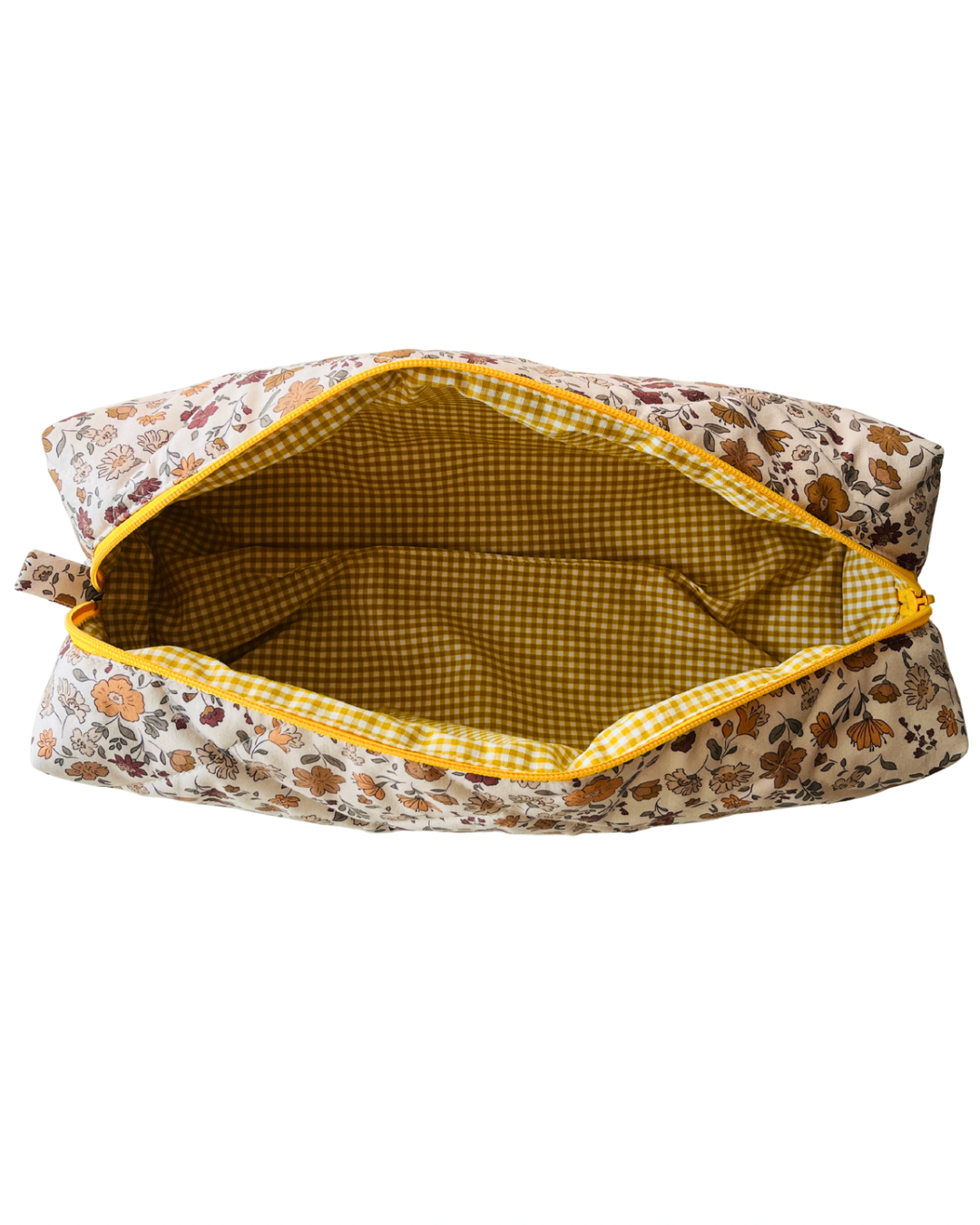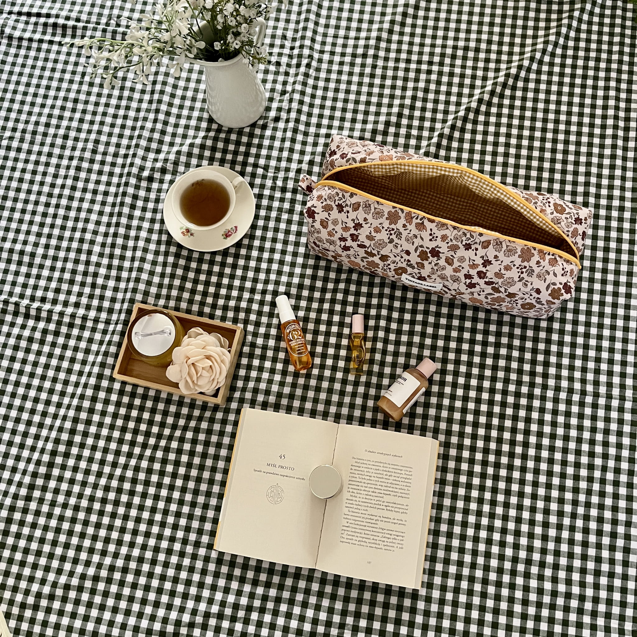 Lekka i pojemna kosmetyczka wykonana z naturalnej bawełny, idealna do przechowywania suszarki, lokówki czy prostownicy.
