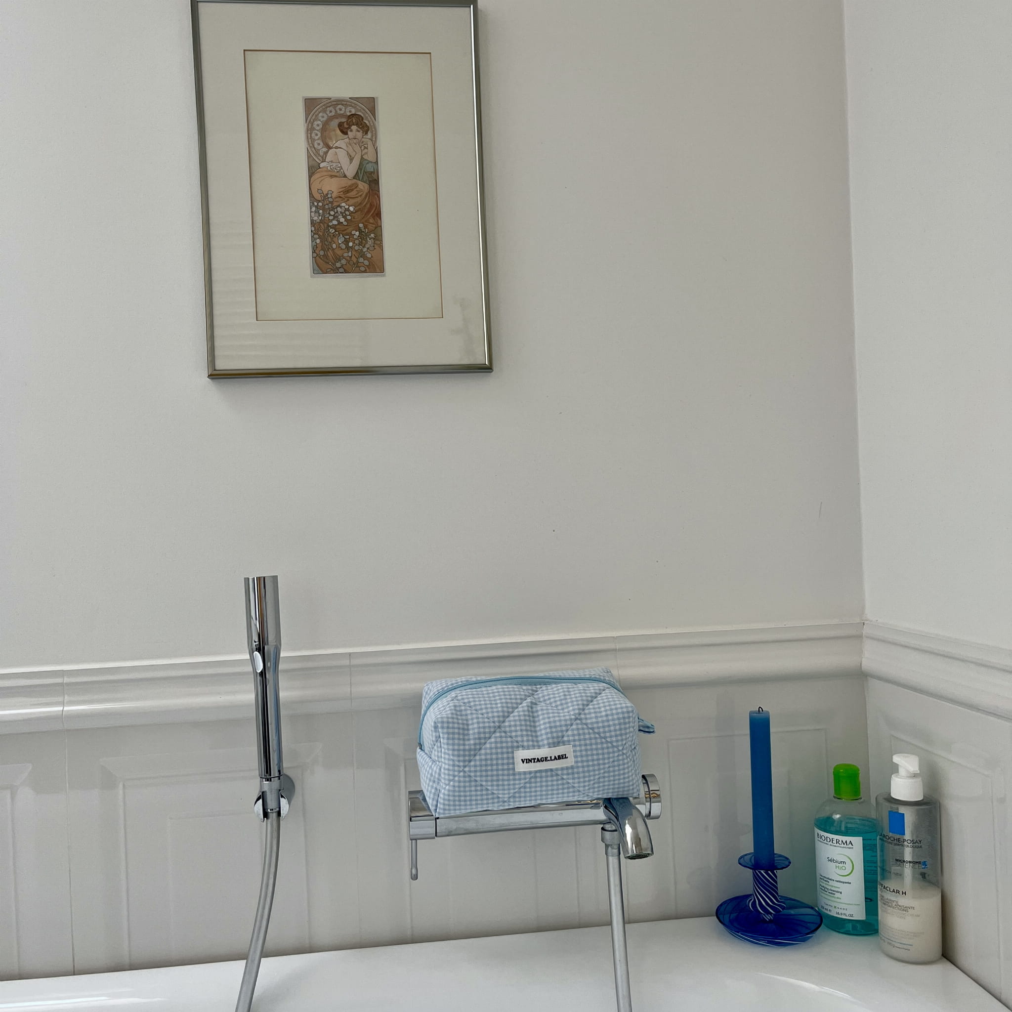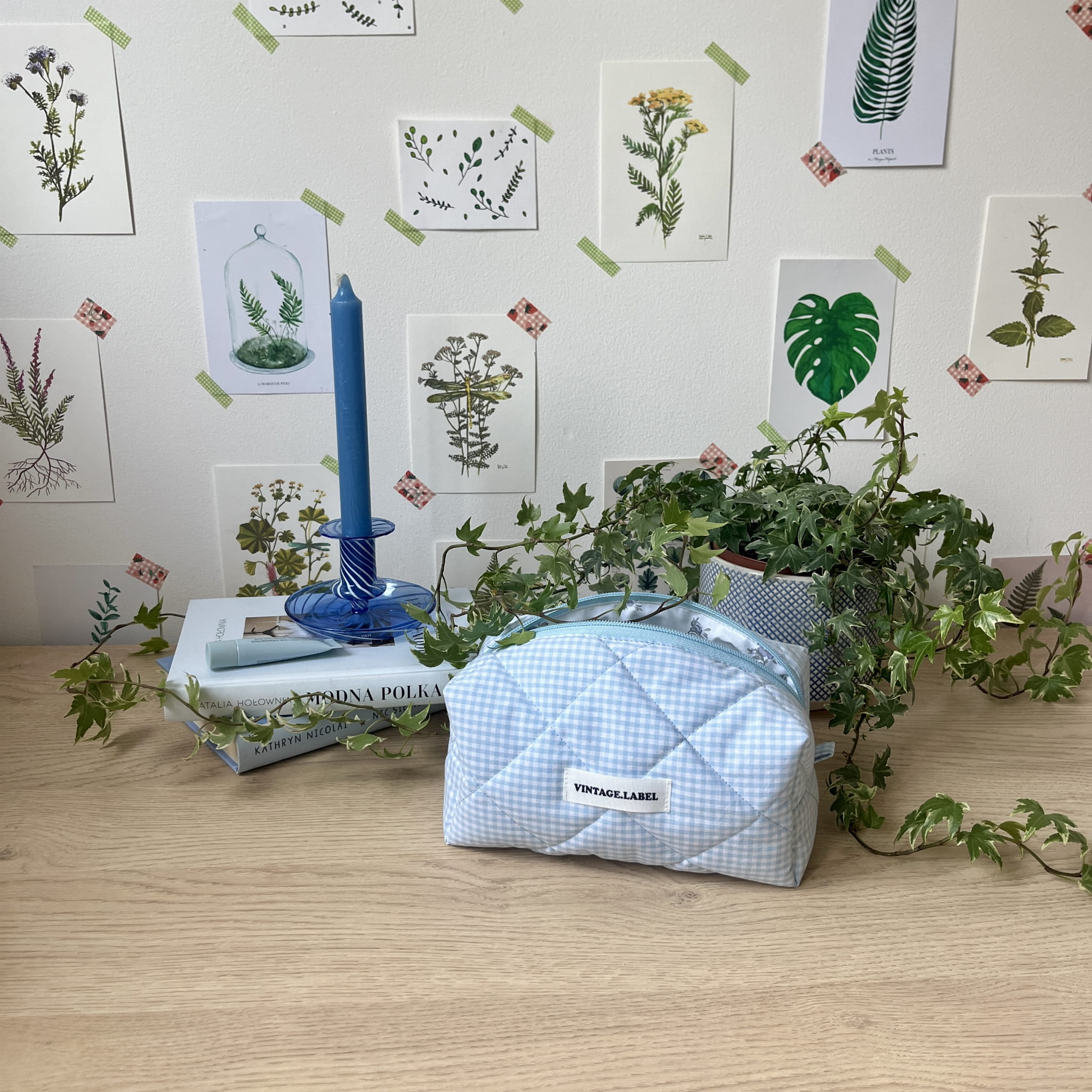 Mała kosmetyczka w błękitną kratkę